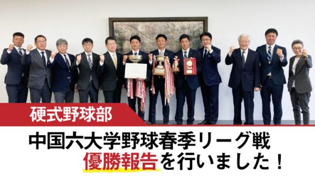 4月1日から開幕しました中国六大学野球春季リーグ戦で、本学の硬式野球部は10勝3敗(勝ち点5)という戦績を収め、すべてのチームから勝ち点を取り、優勝いたしました。その結果、6月4日(日)に開幕する、第72回全日本大学野球選手権大会の出場が決まりま... -